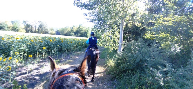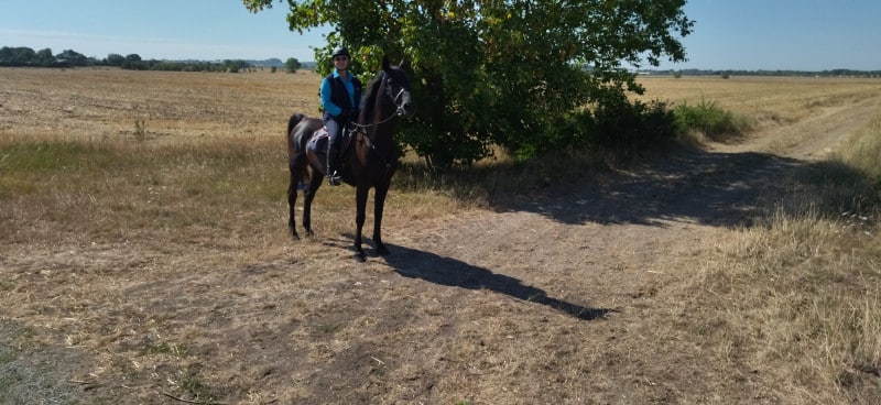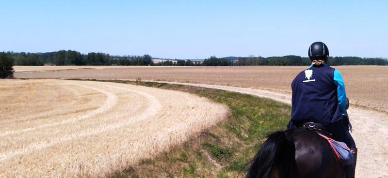 Les adhérents Equi’Tey présents ont passé 3 jours de rando avec une vraie météo d’été, plutôt chaude ! Heureusement, chaque jour, les tracés comportaient des gués à traverser, les chevaux pouvaient ainsi se rafraichir et boire. Moncontour dispose d’un bel environnement, entre forêt et plaine, et son donjon en haut de la colline est un vrai repère visuel (super pratique si on a un doute !)