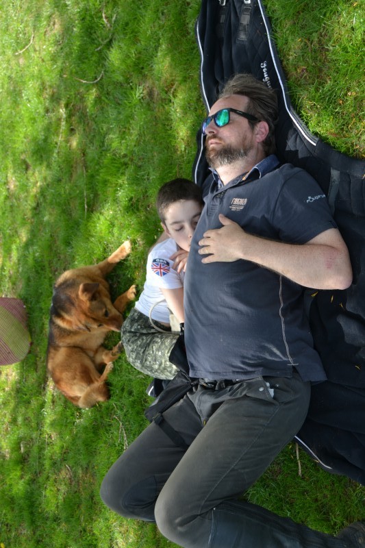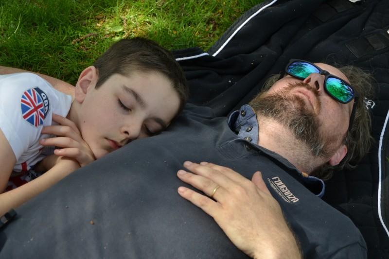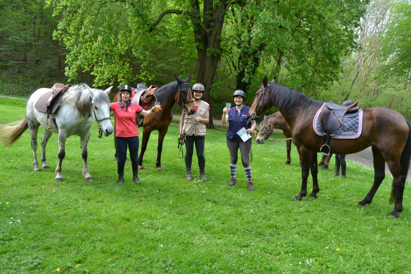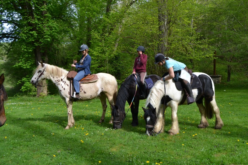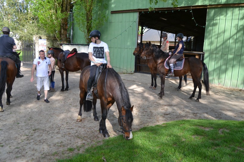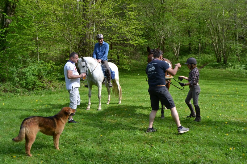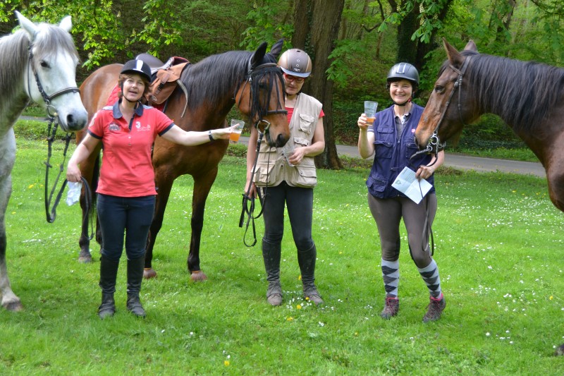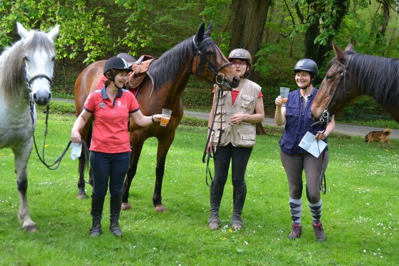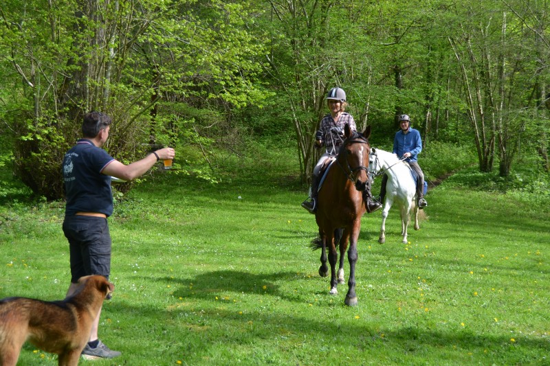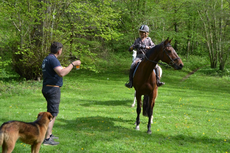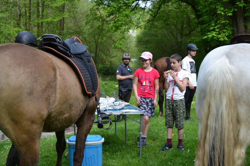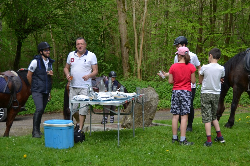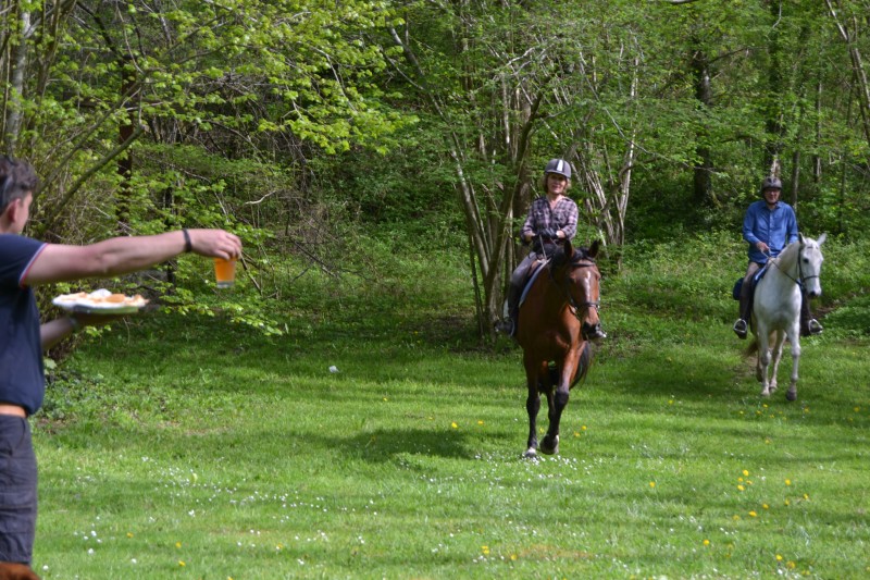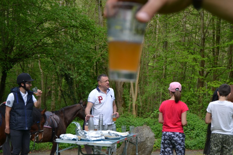 De retour aux écuries nous avons partagé un super pique-nique, en étant installés « comme des rois » avec tables, chaises… et glaces en dessert, apportées par Caroline, et gardées au frais grâce aux bons soins de Mathieu. Le soleil étant au rendez-vous, l’ensemble était juste parfait !