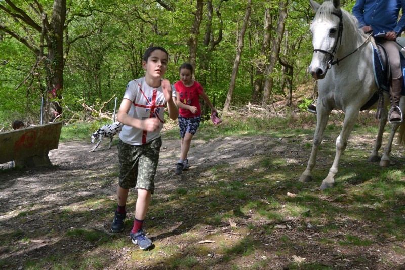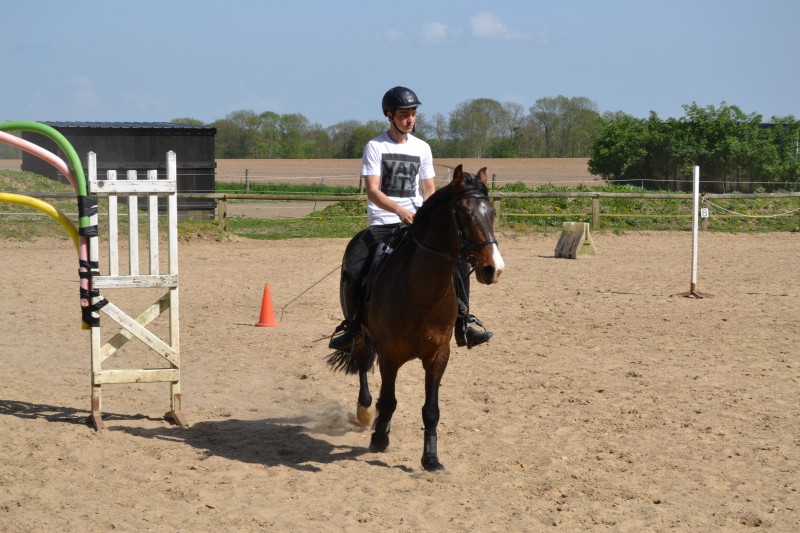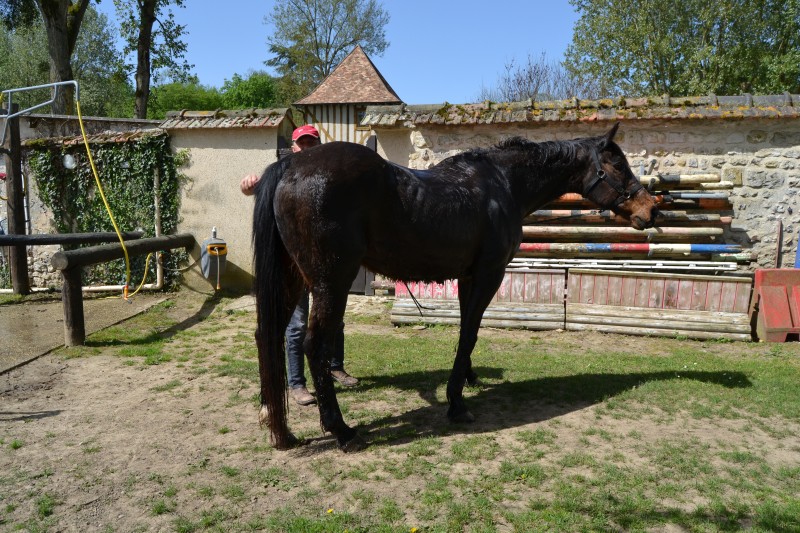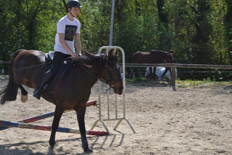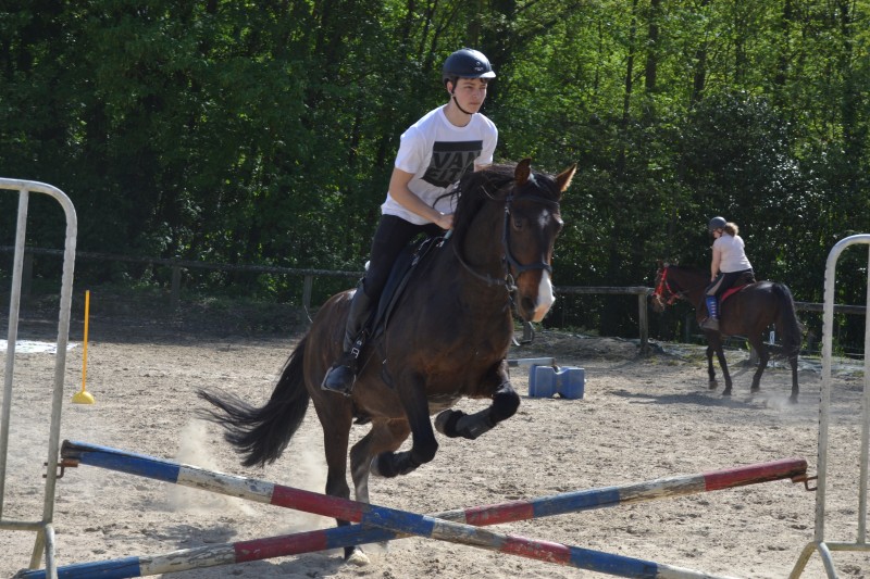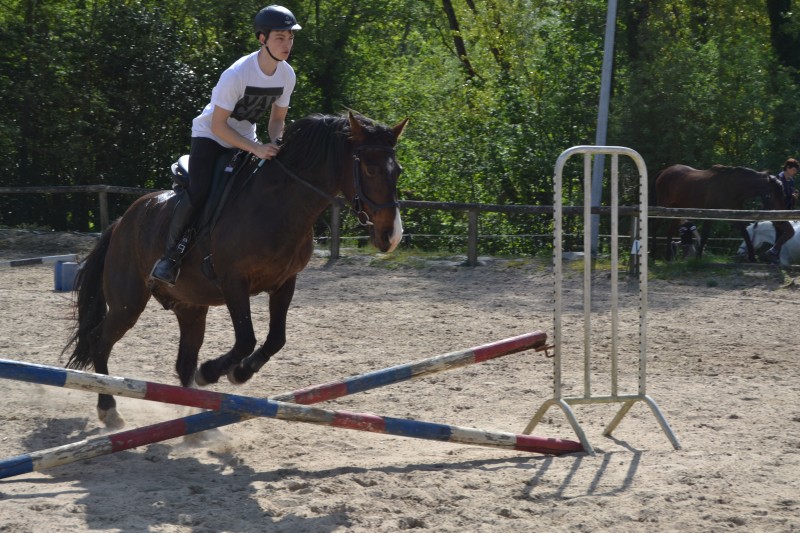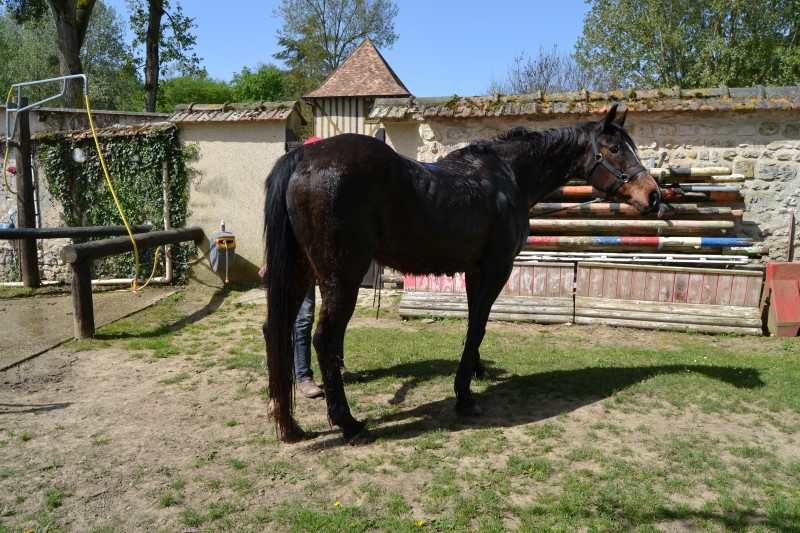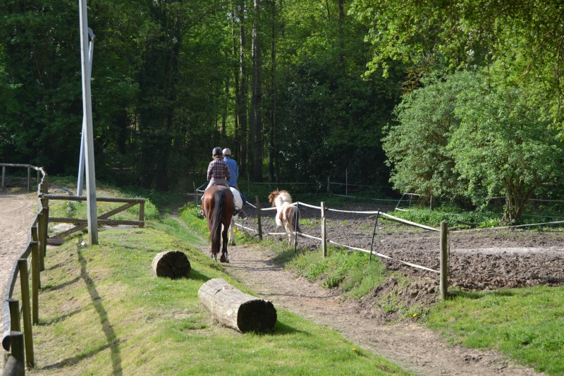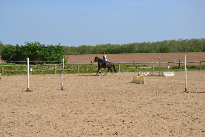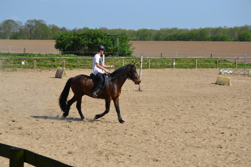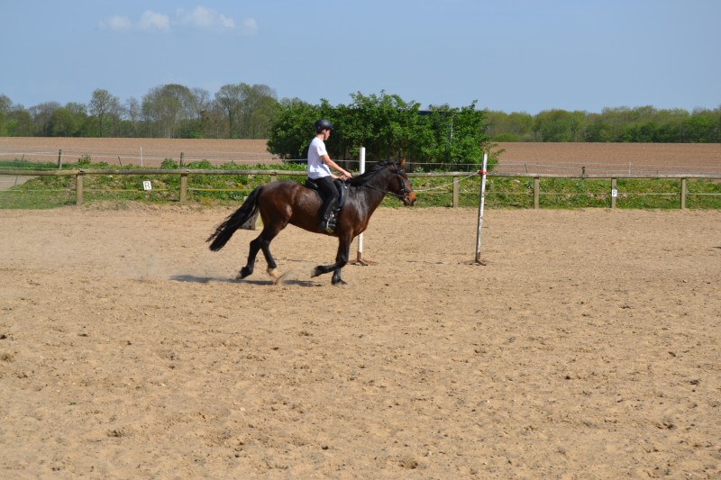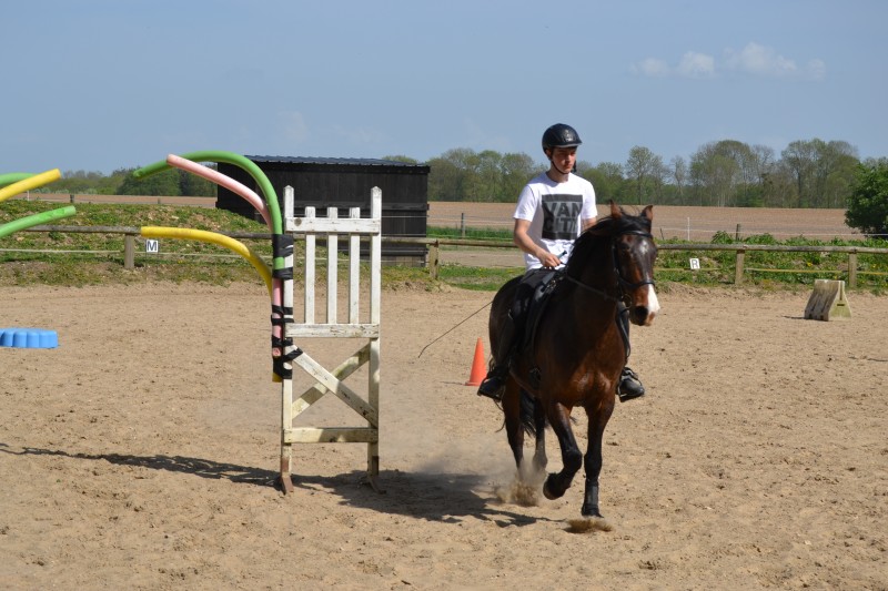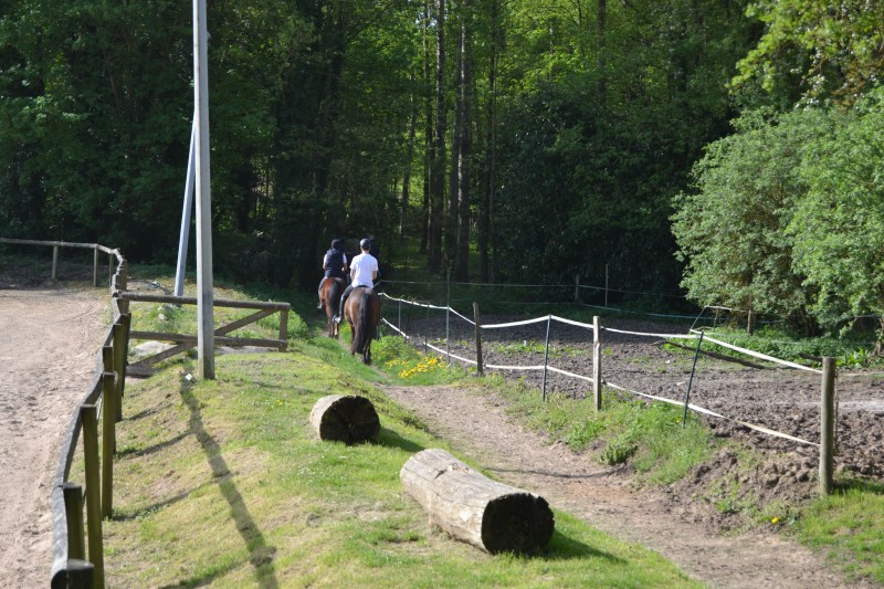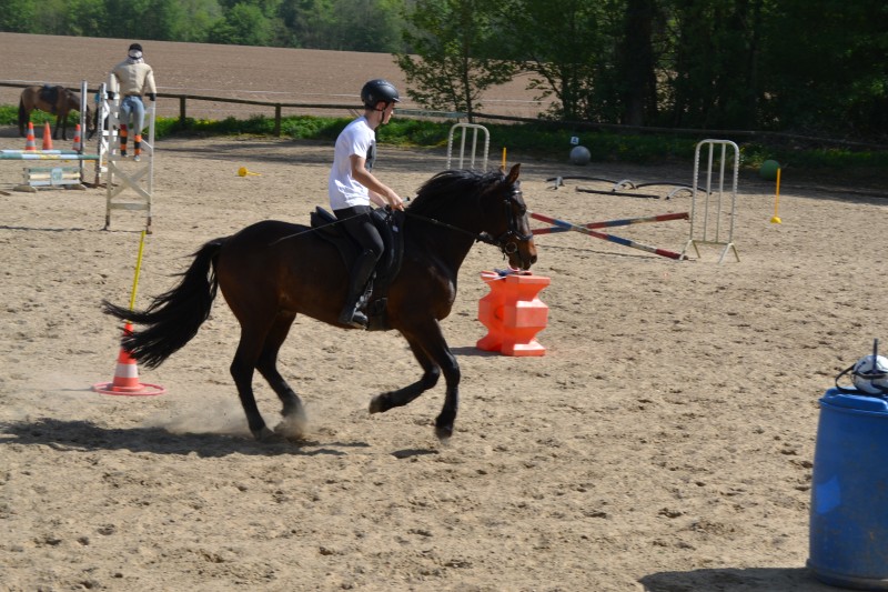 L’après-midi a été consacré à un parcours sur la carrière des écuries, visant à désensibiliser nos chevaux à de nouvelles situations : obstacles divers et variés, bâches (dessus, dessous)