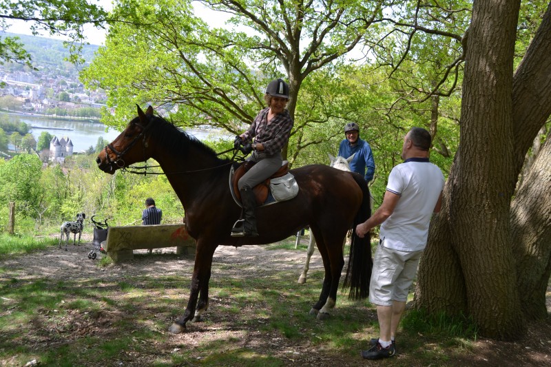 Au menu : visite de la forêt de Vernon, petit encas imprévu avec cidre (offert par Jean-Claude) et tartes aux pommes maison (cuisinées par Marie-Inès) dans un bel endroit chargé d’histoire et de souvenirs au détour d’un chemin pentu et touffu, passage dans le chemin des chauve-souris (une dizaine d’espèces ont élu domicile dans les grottes calcaire de cette belle région) et cerise sur le gâteau : magnifique point de vue sur la Seine et Vernon.